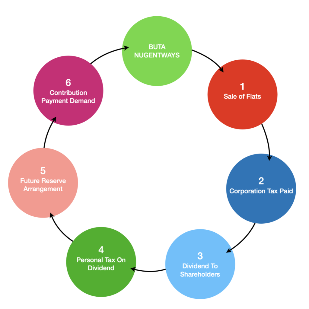 This diagram illustrates a potential financial cycle following the sale of income-producing flats. Sale proceeds are subject to taxation at the company level, with further tax potentially payable by shareholders depending on individual circumstances. Once distributed, the estate permanently loses its recurring income buffer. In the absence of that buffer, future major costs may require the creation of a sinking fund or other structured reserve arrangement(subject to lease provisions or variation), resulting in shareholders contributing funds back into the company over time.